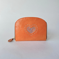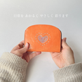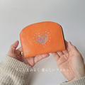 刺繍革財布『HEART』つやOrange(牛革)ラウンドファスナー型mini❤︎