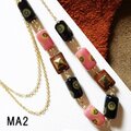 黒・ピンクのガラスに、スマイルを入れたビーズと、スタッズを打ったイタリア製レザーを組み合わせております。
