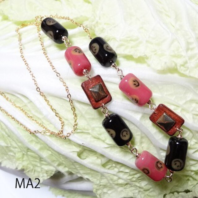 バーナーワークの技法で制作した、手作りのガラスビーズのネックレスです。