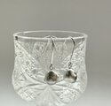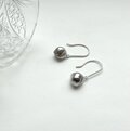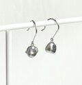 明るいシルバーグリーンのパールが、小さく揺れるピアスです。