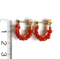 透明感のある美しい天然石カーネリアンのラウンドビーズをたっぷりと編み込んだミニサイズのフープピアスです。