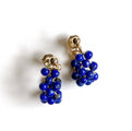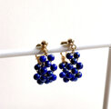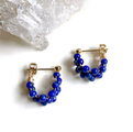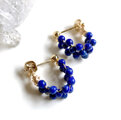 深い瑠璃色の中に所々パイライトのゴールドが見られる天然石ラピスラズリのラウンドビーズをたっぷりと編み込んだミニサイズのフープピアスです。