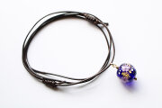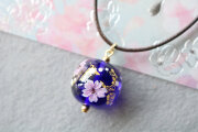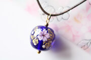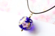 金箔を貼り付けた青色の地に、桜を咲かせたとんぼ玉です。