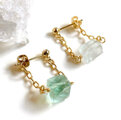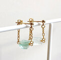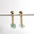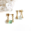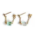 華奢なチェーンをスクエアに繋いだナチュラルな風合いの原石一粒チェーンピアス。