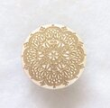 1. シーリングワックスビーズ3~4個をスプーン(スタンプの大きさによる)に入れ、キャンドルに火を灯し、下から焼いてシーリン グワックスを溶かします。