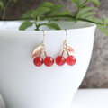 天然石レッドカラージェード さくらんぼピアス(イヤリング)|14Kgf アレルギー対応 小粒 揺れる 赤