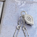 ☆蝶ちょカットシェルのバッグチャーム(ネックレスにもなります。)蝶々の羽が 綺麗にフレームされて 少しづつ 足された色石が シェルの色にぴったりですね。 大切に 使います。