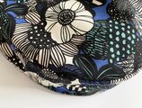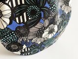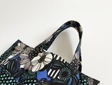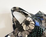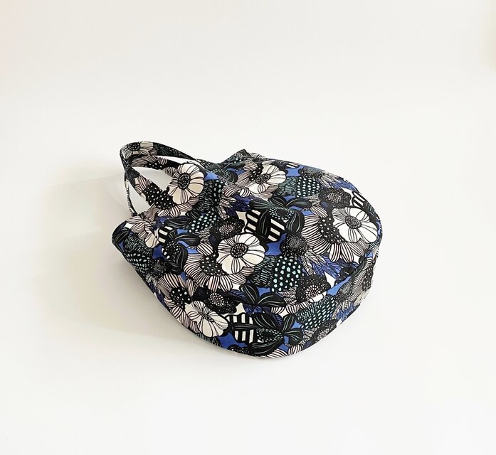北欧風アートフラワー*ラウンド型バッグ ロイヤルブルー 外ポケット*コットンキャンバス A4