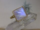 大き目スクエアのブルームーンストーンのシンプルな14kgfリング*石枠側面に細かい線のテクスチャーが入ったアンティーク調の雰囲気です*掲載品は9~15号まで0.5刻みで調整可能です(現在、縁が立っていますがサイズ確定後にシッカリ滑らかな石留めを致します)