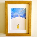 特集掲載作品* 【星に願いをこめて】原画「流れ星」 ※2L木製額縁入り・水彩・インテリアアート・犬の絵
