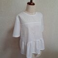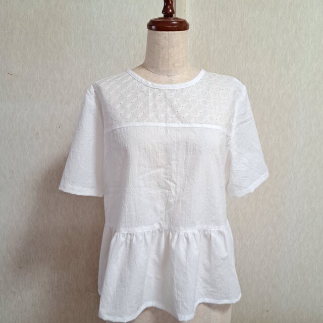 胸のところを綿レースで切り替えてペプラムブラウスを作ってみました。
