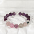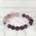 淡い可愛いマルチカラーのフローライトと、光沢の綺麗なアメシスト、輝きと透明感の綺麗な水晶のブレスレットです。