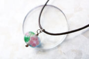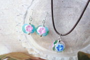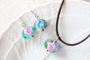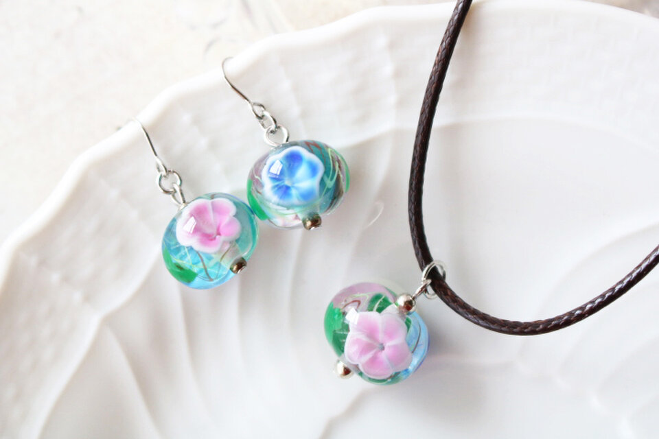 バーナーワークの技法で制作した、ピアスと小さなペンダントのセットです。
