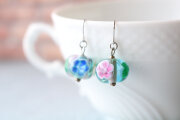 とんぼ玉のサイズは縦11mm×直径14mm(金具含まず)です。