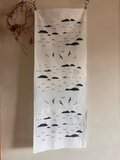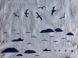 今年は輪ゴムでランダムに絞って全体を藍錠で浸染してから、島と海と鳥を擦り込みしました。