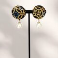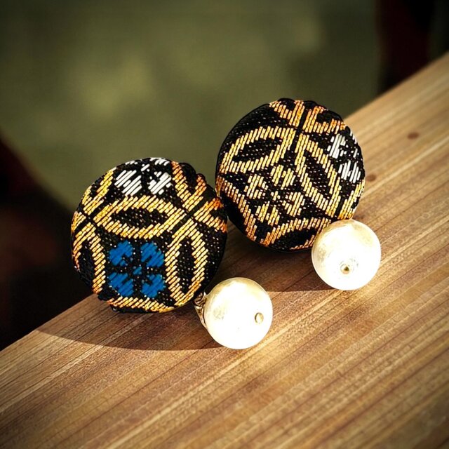 《ピアス》黒がかっこいい西陣織金襴とコットンパールの包みボタンピアス