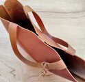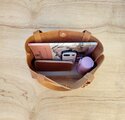 バッグの底には、型崩れしにくいよう硬めの底革を敷いています。