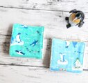 ダブルガーゼにプリントされたいろんな様子のペンギン。かわいいです。