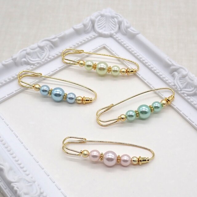 パステルカラーや優しい色合いのカラーパールのシンプルなデザインのパールブローチです。