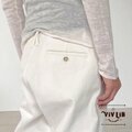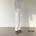 生地晒しをしない為立体感のあるデニムに仕上げております。生地の素材感と手持ち感は他のホワイトデニムにはない表現力を持っています。