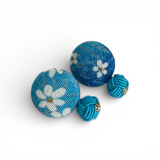 《イヤリング》世界に一つのデザイン☆ちりめん波に揺れる小桜*空色の綺麗な包みボタンイヤリング