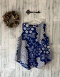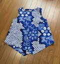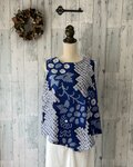 ☆ 浴衣リメイク 青に白い花 有松絞りアシンメトリーノースリーブブラウス ♪