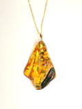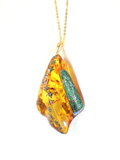 リトアニア産の琥珀に蒔絵をした大きなペンダントです。