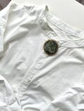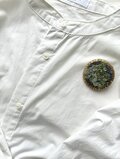 サイトの写真よりなお美しいブローチが届きました!白なのに光でさまざまな色が差し、季節を問わずどんな服にも映えそうです。 包装もとても丁寧で、作品への愛と購入者への心遣いが溢れており、とても幸せな気持ちになりました。 素敵な作品をありがとうございました!きっとまたご縁がつながる気がします。