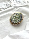 とてもとても素敵なブローチです。青、紺色系の服につけようと購入しましたが、ブローチに使われている数種類の青が美しく馴染みます。そして少し神秘的。 物語のようなブローチの名前にも引き込まれました。 素敵なブローチをありがとうございました。
