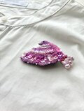 ところどころに小さな色味の異なるピンク色のガラスビーズをつけています。