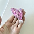 尻尾には、3つ、ピンク色の淡水パールをつけました。