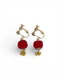 《イヤリング》京都絹巻き水引き赤の綺麗な四重玉結びと黄色の可愛い忘れな草のイヤリング