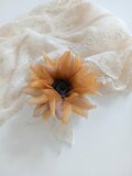綿オーガンジーと正絹オーガンジーを落ちついた色彩に染め、レースリボンを結びお洒落なコサージュに仕上げました。
