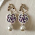 《イヤリング》京都羽衣水引藤色の綺麗な梅結びとコットンパールのイヤリング