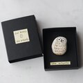 本日、届きました。キレイに梱包され、黒のかわいい箱に愛らしい鳥が一羽!とてもいい作品です。どこに付けてもステキになりそうな予感がします! ありがとうございました!感謝!