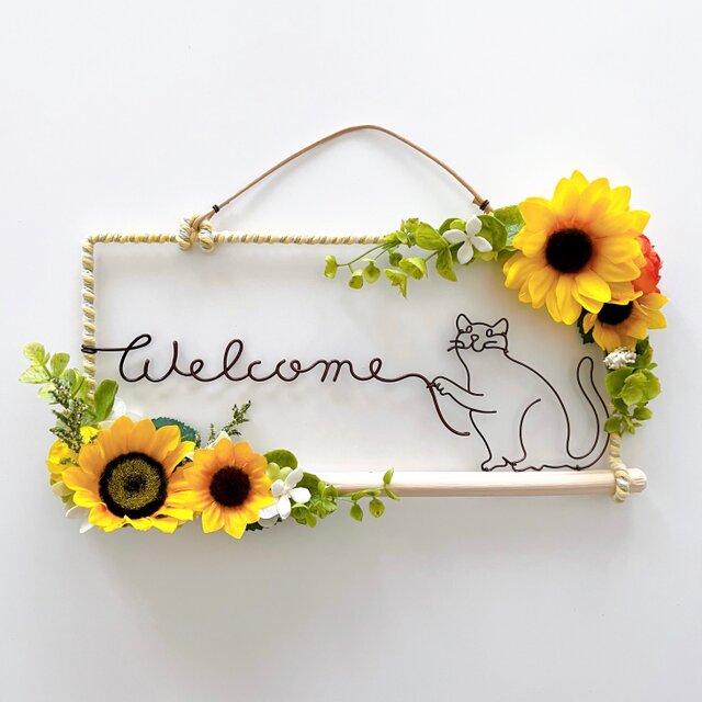 夏が大好きな猫がご機嫌な顔でWelcomeとお出迎えしています ♪