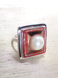 いかにも漆器の色使いですが、真珠とトルコ石が加わることで、上品なリングとなっています。