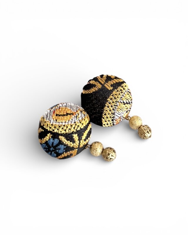 西陣織金襴で作った包みぼたんピアスです。