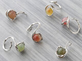 色とりどりの天然石を、やわらかな輝きを放つ金属がそっと包み込み、優しさの中に凛とした強さを感じる仕上がりにしてみました。