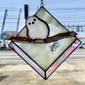 シマエナガのサンキャッチャー ステンドグラス ガラス パネル インテリア雑貨