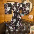 【 和洋折衷 浴衣 リメイク ワンピース ドレス 帯サッシュベルト かわいい牡丹と撫子のお花 W-475 】
