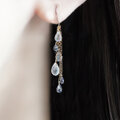 ブルーサファイアとレインボームーンストーンによる月の女神のピアス ~迦具夜姫