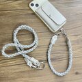 3Way 本革×パラコード スマホショルダーストラップ ホワイト・グレーミックス