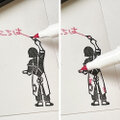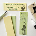 手書き文字の末尾を絵の筆に繋げると彼が書いている様になる挿絵はんこです。
