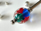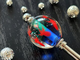 かんざし 赤金魚とブルーグリーンのグラデーションのとんぼ玉 一本挿し 簪 トンボ玉 蜻蛉玉 青 レッド 和風