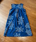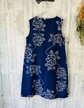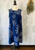 ☆ 浴衣の反物から 青に白抜きのバラ ヨークギャザーワンピース♪