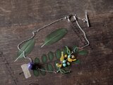 ボタニカルモチーフとチャロアイトの真ん中がチェーンの中心にあたります。