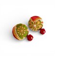 京都西陣織金襴の色鮮やかな桜と絹巻き水引玉結びのくるみボタンのピアス