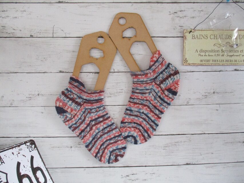ドイツのブランド Regia Cotton Color Around The World 2412 で編んだ タブ付きコットンソックスです。