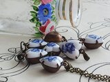 ヴィンテージ Blue薔薇/Whiteハート 真鍮古美ネックレス
